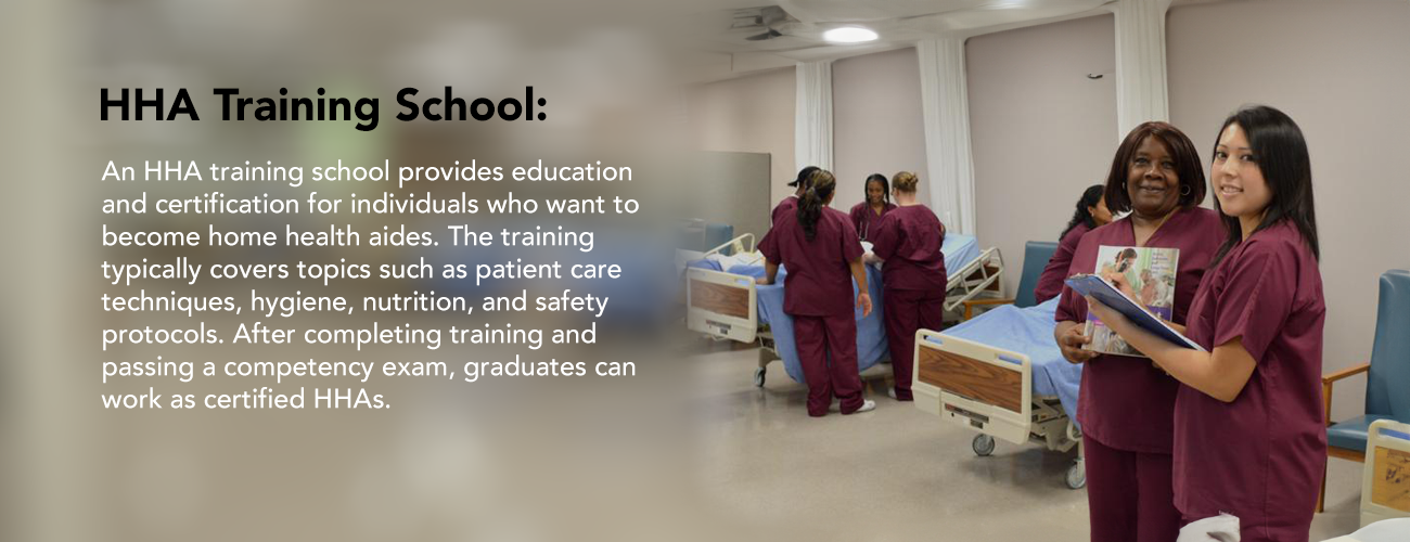 An HHA training school provides education and certification for individuals who want to become home health aides. The training typically covers topics such as patient care techniques, hygiene, nutrition, and safety protocols. After completing training and passing a competency exam, graduates can work as certified HHAs.